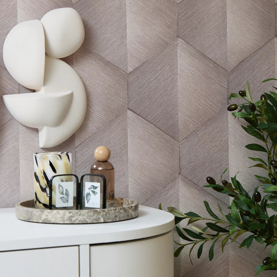 Hex wallpaper is your go-to choice for contemporary geometric flair. Crafted with finesse, Hex brings a touch of modern sophistication to any space. Featuring layered warm grey pyramid shapes, this wallpaper creates a mesmerising 3D illusion that elevates your walls to new dimensions. The textured pyramids add depth and character, while the warm grey shades play with light and shadow, creating a sense of dynamic movement to your room. And to top it off, Hex boasts a subtle metallic sheen, adding a hint of luxury to its modern charm. Transform your space with Hex and let your walls speak volumes about your fabulous style.