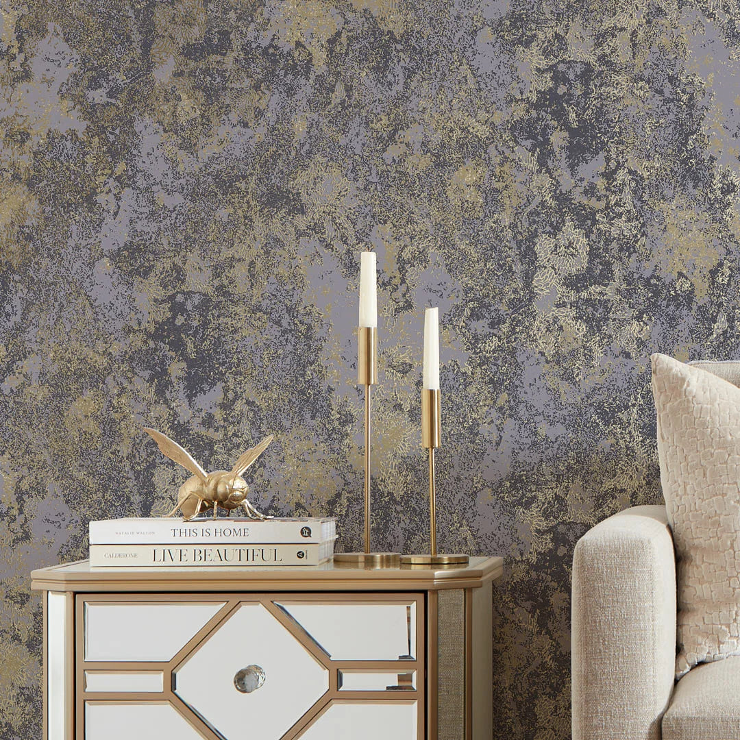 Our most impactful colour combination in the Turin Industrial wallpaper collection, this charcoal and gold colourway is designed to make a statement and get heads turning. It's bold, but has softer elements through the use of gold metallic so you can easily accessorise and complement this style.