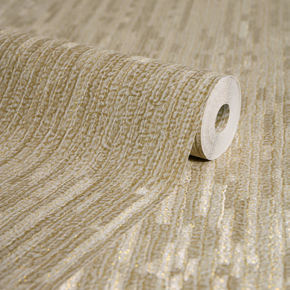 Elevate your space with the unparalleled luxury of our tactile metallic wallpaper. Combining the opulence of metallic finishes with a delicate touch like fabric, this wallcovering adds a new dimension of sophistication to any room. The subtle shimmer and texture gives this paper depth creating an ambience of refined elegance. This isn't just wallpaper, it's an experience. The warm gold colour and gold metallic detail creates a feeling of relaxed luxe. The radiant warmth of this gold metallic wallpaper provides a stunning contrast to the grounded, earthy richness of our China Clay matt emulsion paint, creating a harmonious balance between opulence and nature.
