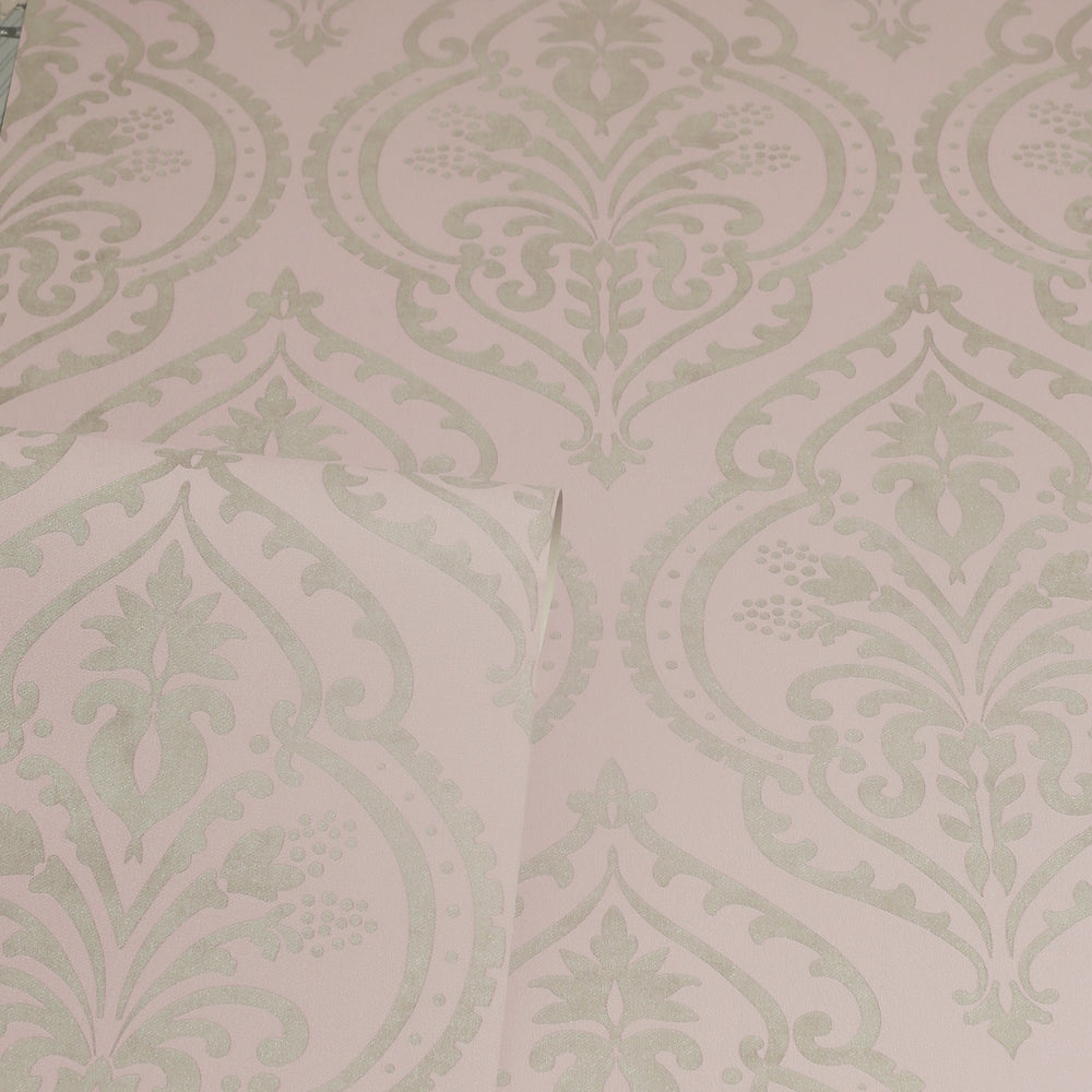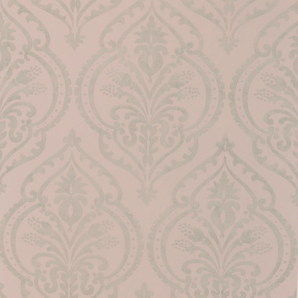 Sample of Moroccan Damask Wallpaper in Blush and Silver
