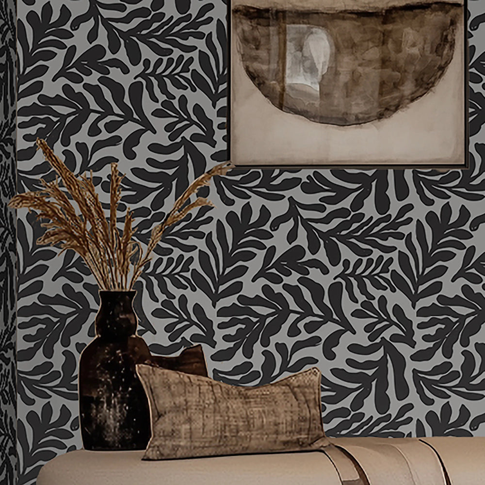 Unwind and recharge in a serene oasis. Our Coral Leaf wallpaper promotes relaxation and calm, creating a peaceful haven within your home. The charcoal coral leaf set on a crisp white background creates a sense of movement to soothe. Ideal for a bedroom or living room. Complement with Moonlit Sky matt emulsion to give any room the feeling of serenity.