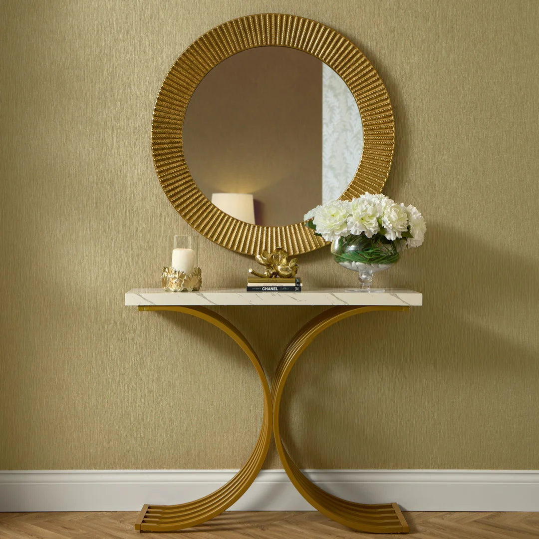 Elevate your interiors with the timeless allure of Riviera Gold textured wallpaper. Crafted to captivate, this luxurious design will cast a radiant glow across your walls. The sumptuous gold hue adds depth and opulence, infusing your space with style. Pair it with bold, statement accessories to enhance the luxurious trend.
