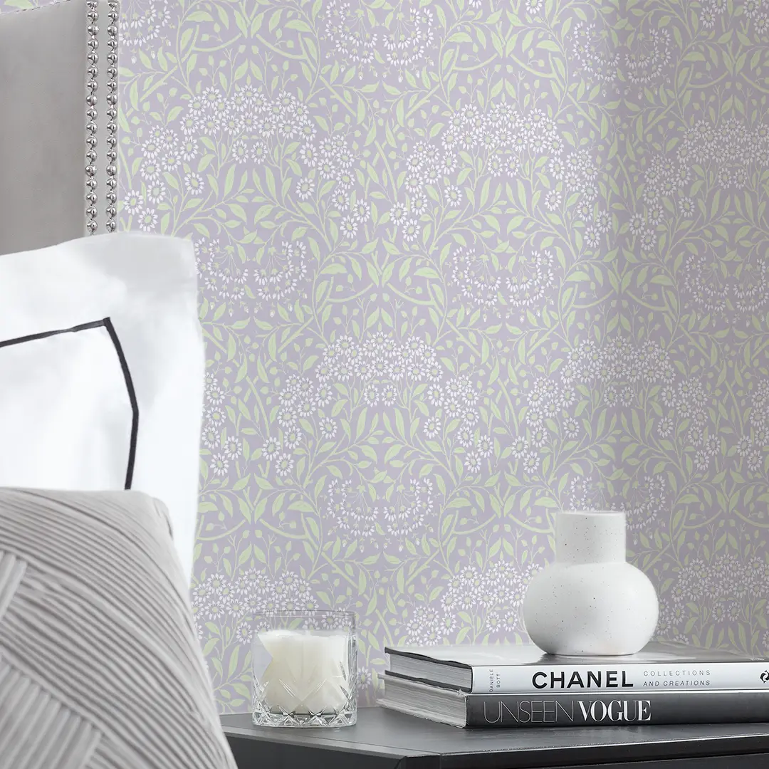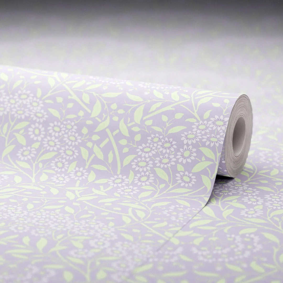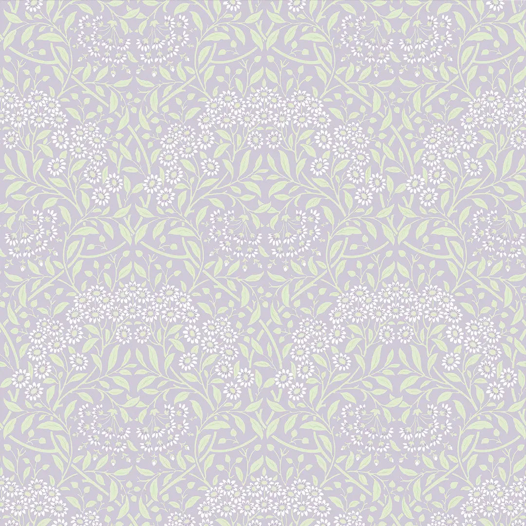 A masterful ode to the enchanting British 19th-century Arts and Crafts movement, our delightful 'Vintage Daisy' wallpaper awakens a feeling of nostalgia and romance. Pretty daisies and leaves interlace like secrets whispered among the flowers, while each delicate petal unfurls with a gentle grace. Lavender, with its calming aura, infuses your space with quietude, while sage brings a sense of grounding and balance. Together, they evoke a mood of gentle elegance and natural serenity. Style 'Vintage Daisy' with vintage-inspired furnishings and soft, earthy accents for a pleasing energy that soothes the soul.