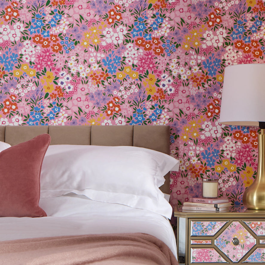 Transform your walls with our sweet and simple Woodland Meadow wallpaper. Its charming ditsy flower pattern in lively colours offers a fresh, understated elegance that brightens any room and creates a wonderfully inviting atmosphere. Pair with our Classic Stripe wallpaper in Pastel Pink or Lemon Yellow for a beautiful feminine feel.